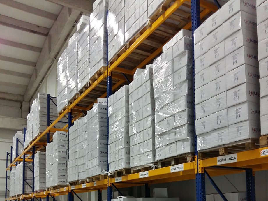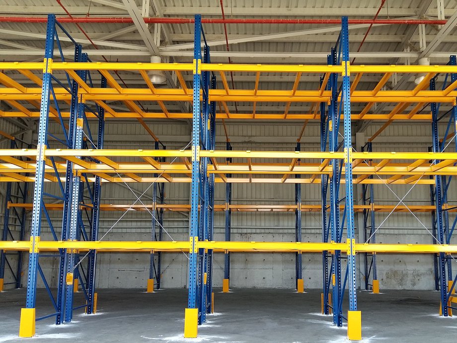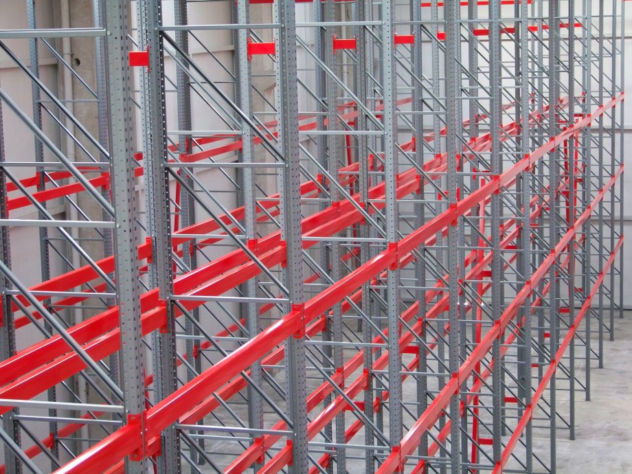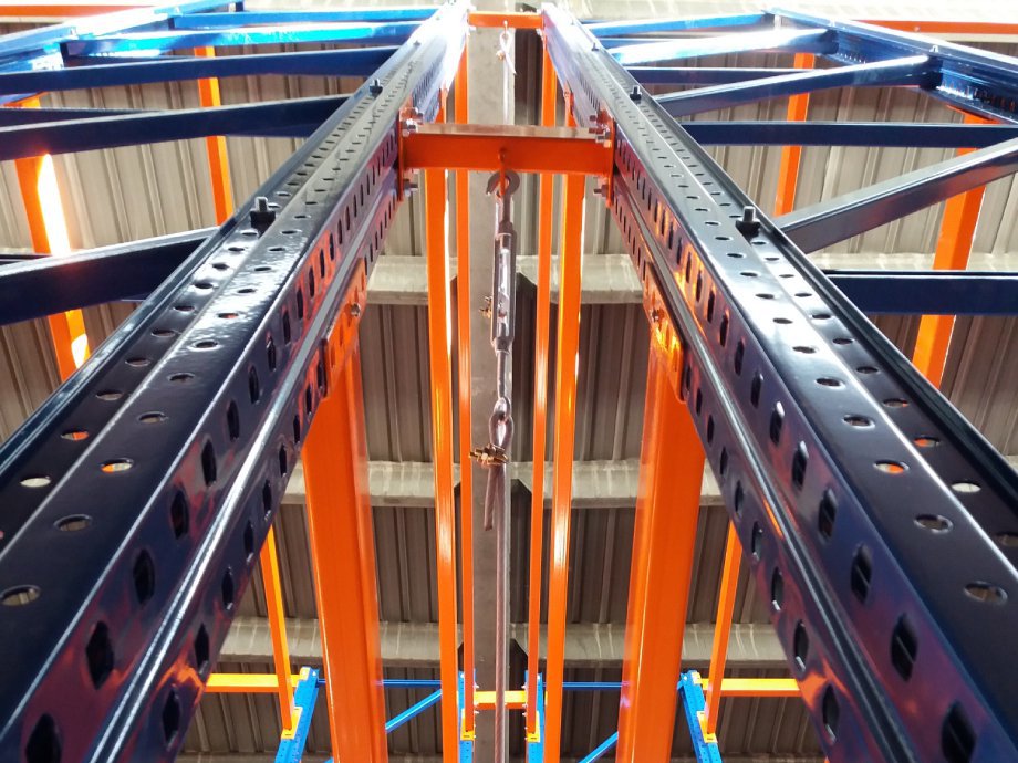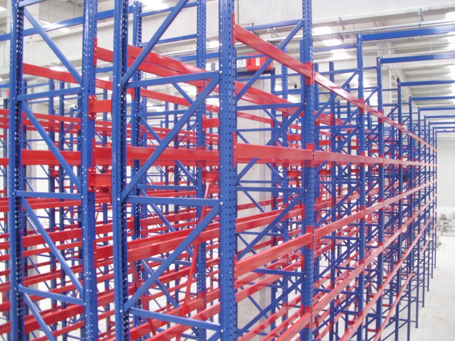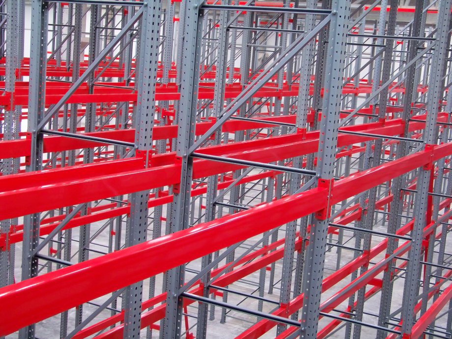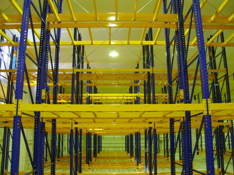 Толщина траверсы и стола определяется в зависимости от типа хранимого продукта. Он обеспечивает гибкость по ширине и высоте ножек и траверс. Детали системы очищаются с помощью фосфатной ванны и окрашиваются электростатической порошковой краской, а затем запекаются при температуре 200ºC. Эту систему также можно использовать в холодильных камерах.