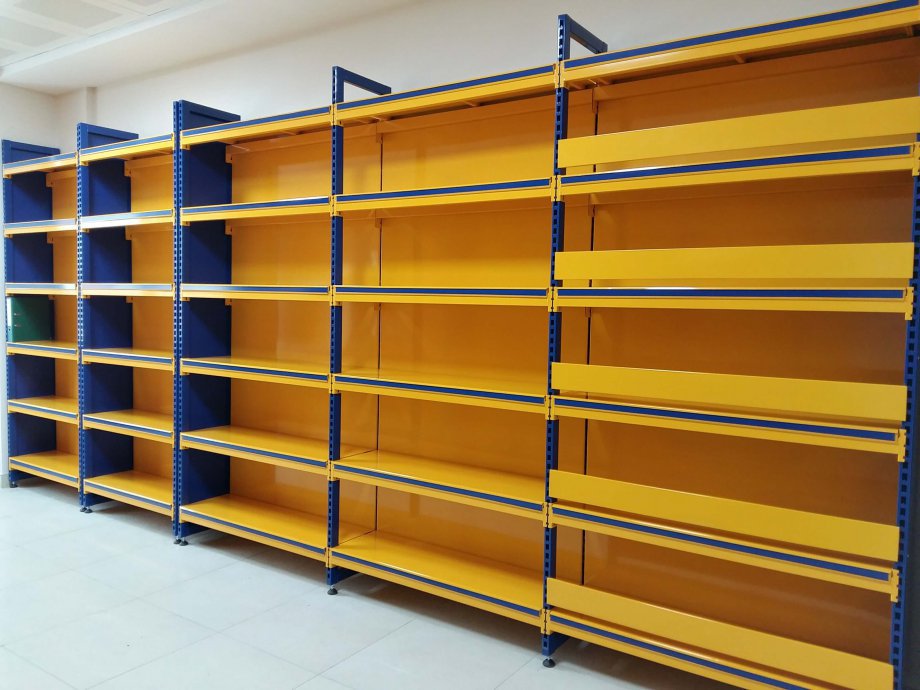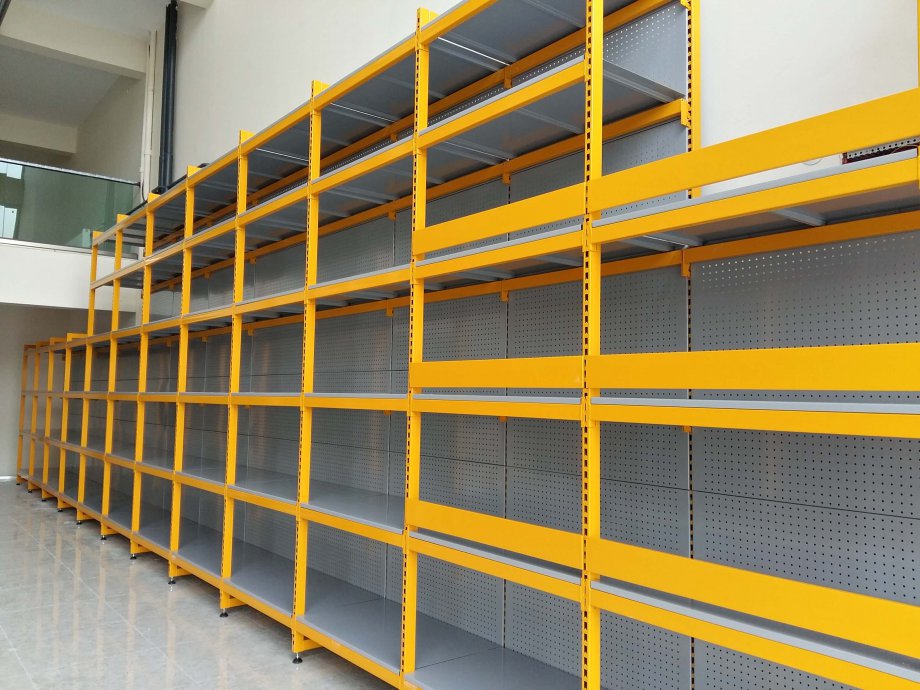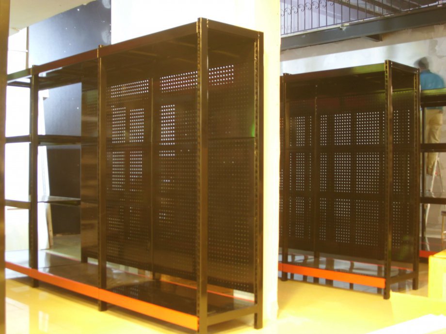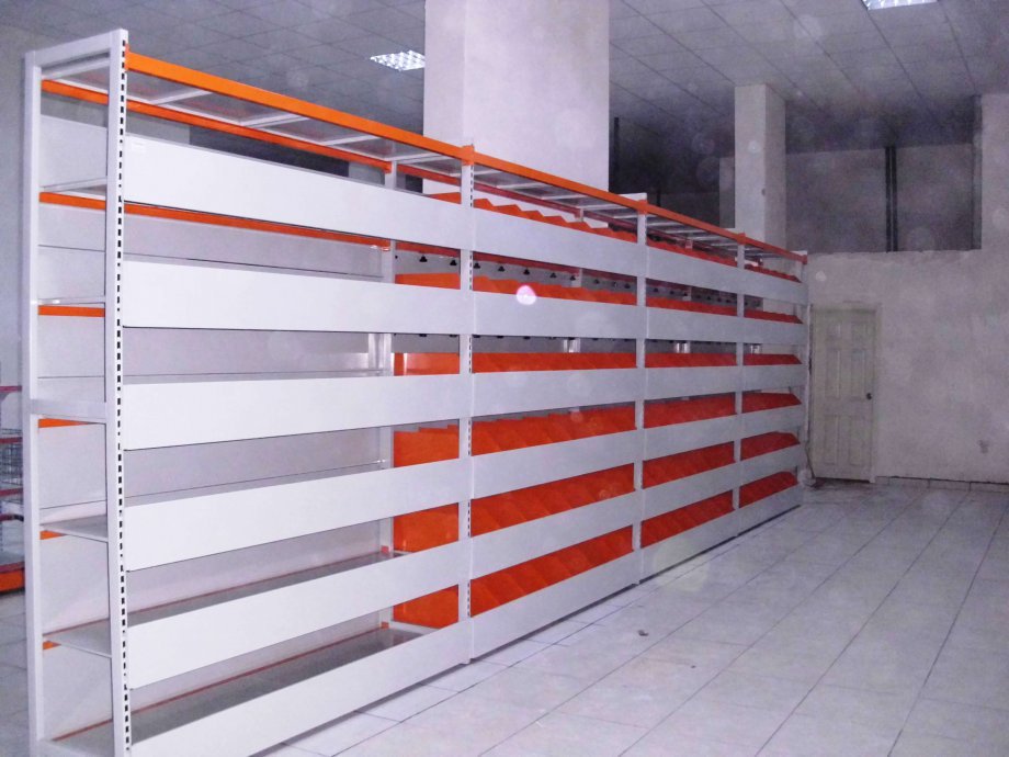 Данная система разделена на две части: двухъярусные полки для магазинов и приставные магазинные полки. Они обычно используются в магазинах, торгующих промышленными товарами. Эти системы предлагают возможность закрытия задней и боковых сторон. На двухъярусной полке с держателем можно перевозить и выставлять тяжелые продукты, на двухъярусной полке с боковой стенкой можно перевозить и выставлять более легкие продукты, а с помощью разделителя основание полок позволит разделить поверхность на множество небольших отделений.