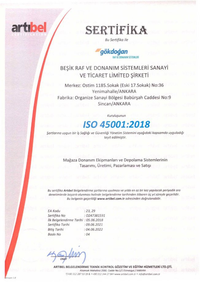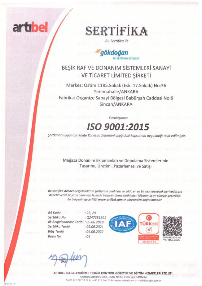 Наша фирма начала свою деятельность еще в 1965 году в сфере производства различных систем полок и оборудования, и завоевала признание и известность с маркой «Гокдоган»; сегодня мы занимаем лидирующее место среди производителей в Турции, благодаря высококачественной, надежной продукции. В широкий ассортимент нашей продукции входят различные полки для хранения, стальные полки, компактные системы архива, рабочие столешницы и модульные строительные системы, патент на которые принадлежит нашей фирме. С года своего основания и по сей день мы выступаем в качестве прямого поставщика материалов. Вместе с тем в последние годы мы активно оказываем услуги также в секторе оборонной промышленности. Для того, чтобы добиться максимальной удовлетворенности наших клиентов, мы производим качественную продукцию по доступной цене, стараемся всегда поставлять продукцию в кратчайшие сроки; в нашей структуре работает команда профессионалов, которые каждый в своем подразделении применяет этот принцип, о чем свидетельствует успех применения системы контроля качества, утвержденный сертификатами ISO9001:2015, ISO14001-2015, ISO45001-2018, FEM ( European Materials Handling Federation).